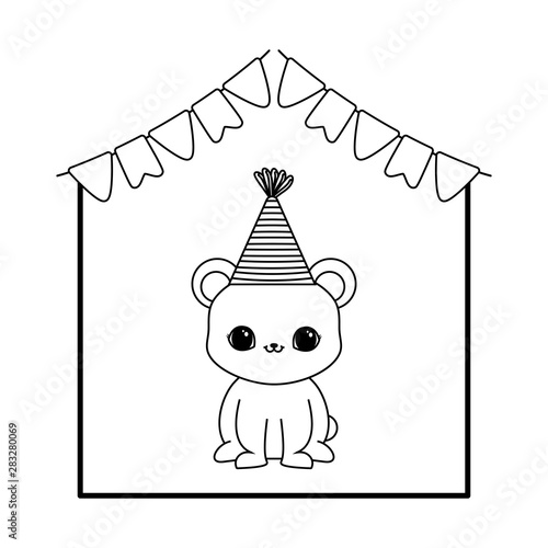 Obraz premium cute bear animal with hat party and garlands hanging