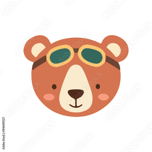 Naklejka premium Cute Bear Aviator Face