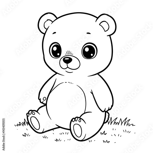 © Ludmila, Naklejka premium Cute bear character sitting on grass in a simple style
