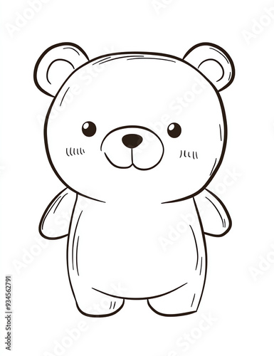 © Kitty, Fototapeta premium Cute bear face coloring page for kids, simple and clean line art style with bold lines, no shading or gray fill, vector illustration