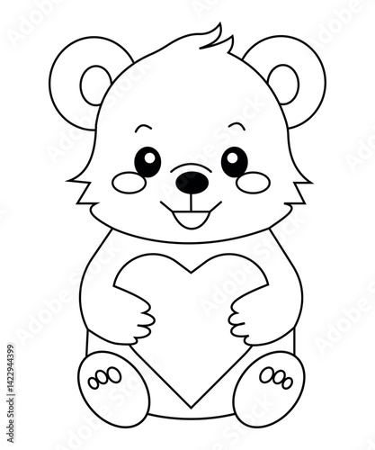 © Dipok, Naklejka premium Cute Bear Holding Heart Coloring Page for Kids