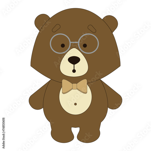 © Liza, Fototapeta premium Cute bear in cartoon style, with glasses and butterfly, symmetry, vector
