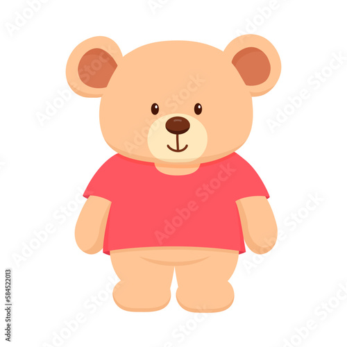 Obraz premium Cute bear toy in clothes. Hand drawn flat childish illustration isolated on...
