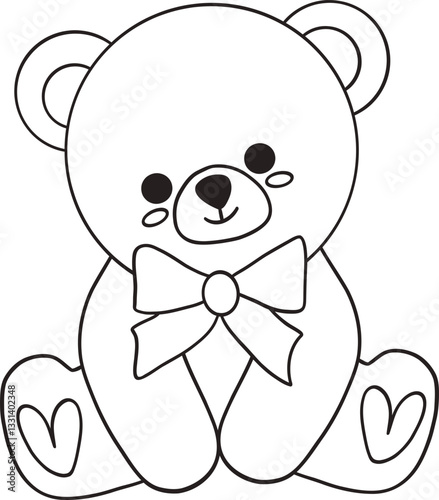 Fototapeta premium Cute Bear with Coquette Bow Outline perfect for coloring pages, nursery art, designed for illustrations, decor, and vector art
