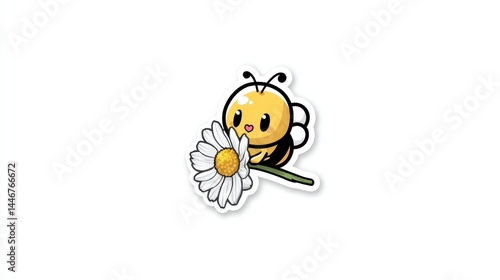 Fototapeta premium Cute Bee with Flower Sticker