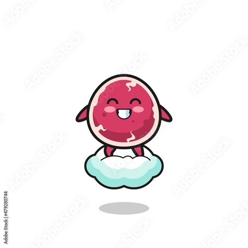 Fototapeta premium cute beef illustration riding a floating cloud
