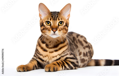 Obraz premium Cute Bengal cat on white background