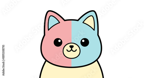Naklejka premium Cute Bicolor Cat Face Illustration
