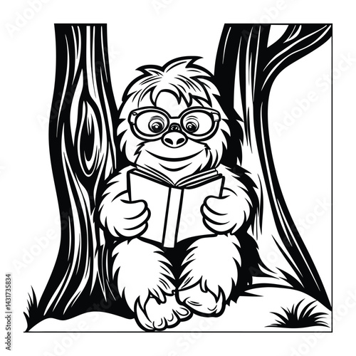 © Dipok, Fototapeta premium cute bigfoot wearing glasses and reading a book