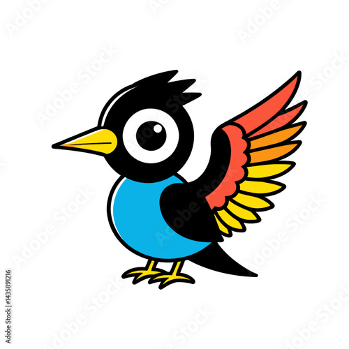 © Aeptor, Obraz premium Cute-Bird-Cartoon-Illustration-Colorful-Wings