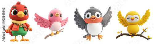 © dinastya, Obraz premium Cute bird character set isolated Png, transparent without background.
