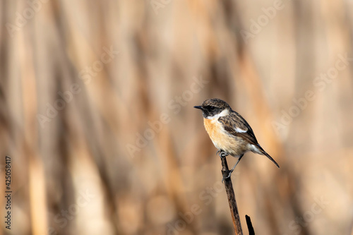 Obraz premium Cute bird. European Stonechat. Nature background.