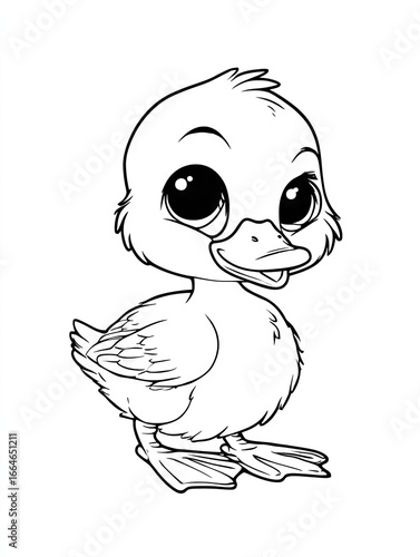 © irul, Fototapeta premium Cute black and white duckling coloring page