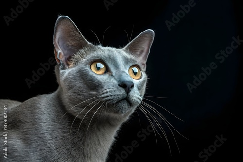 © TLENTKz, Obraz premium Cute black and white feline portrait with striking eyes