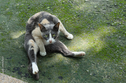 © nikonlike, Fototapeta premium Cute black and white kitten outdoors