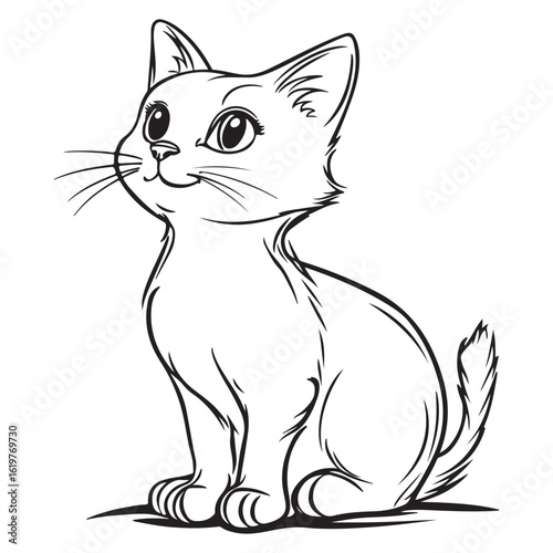 © Md, Obraz premium cute black cat cartoon line art and silhouette vector illustration