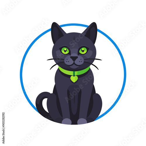© Aeptor, Obraz premium Cute-Black-Cat-Green-Eyes-Collar-Heart-Charm_Cartoon-Vector