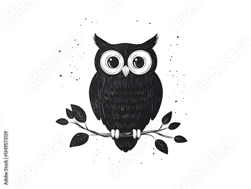 © Alah, Fototapeta premium Cute Black Owl on Branch.