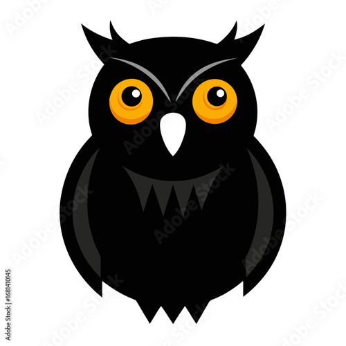 © HASIBUL HASAN, Naklejka premium Cute black owl with big orange eyes halloween icon