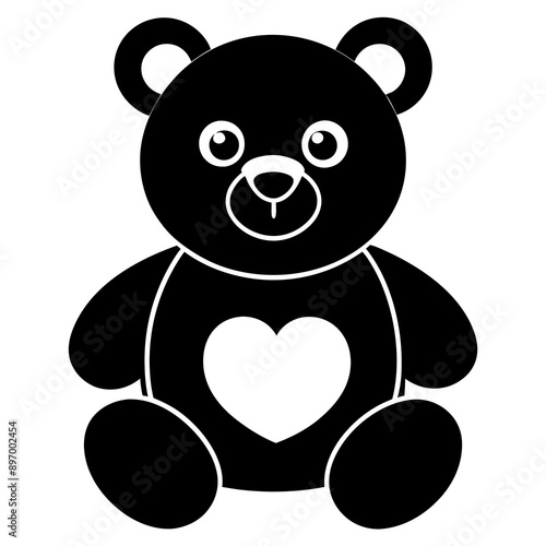 © Chayon Sarker, Fototapeta premium Cute black teddy bear with heart vector silhouette on white background