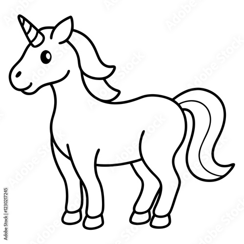 Fototapeta premium Cute Black Vector Unicorn Line Art Black Vector Silhouette Cartoon Illustration