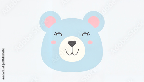 © Yuliya, Naklejka premium Cute blue bear face with a happy expression on a light background