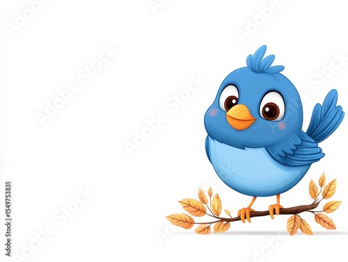 © darion, Naklejka premium Cute blue bird on branch with autumn leaves