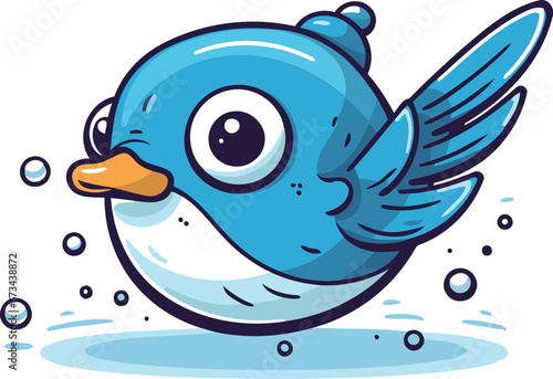 © Ehtisham, Obraz premium Cute blue bird with wings. Cartoon vector illustration isolated on white background.