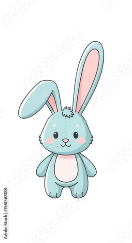 Obraz premium Cute Blue Cartoon Bunny Rabbit Illustration PNG