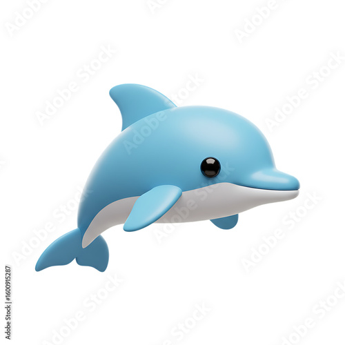 © Stromlab-2, Fototapeta premium Cute blue cartoon dolphin swimming isolated on transparent background