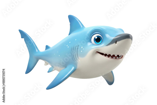 Obraz premium Cute Blue Cartoon Shark with Open Mouth Isolated on White Background