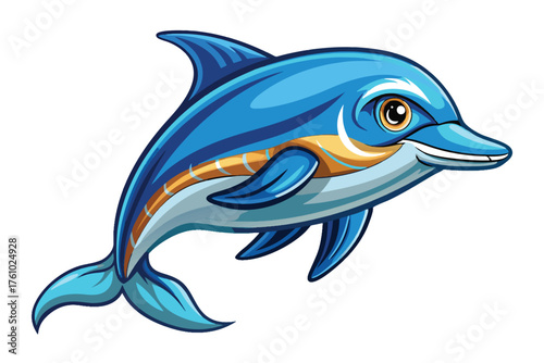 © Usama Graphics, Fototapeta premium Cute Blue Dolphin Vector – Friendly Ocean Animal Cartoon Illustration