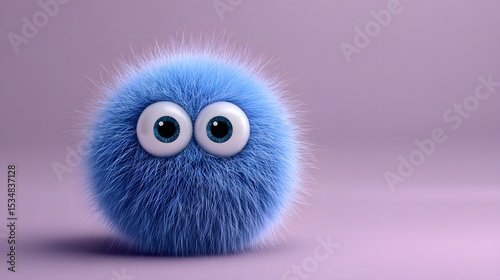 Obraz premium Cute Blue Fur Ball with Big Eyes on Soft Purple Background