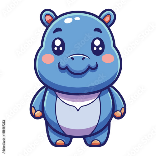 Fototapeta premium Cute Blue Hippo Cartoon