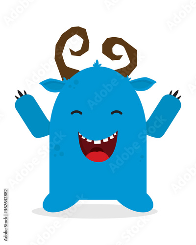 © nazarkru, Fototapeta premium Cute blue horned monster. Vector illustration, flat design.