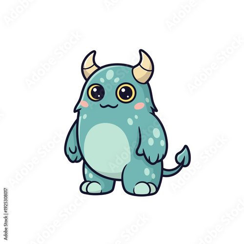 © litel.machine, Fototapeta premium Cute blue monster cartoon character with horns and big eyes, funny, friendly, whimsical, vector illustration
