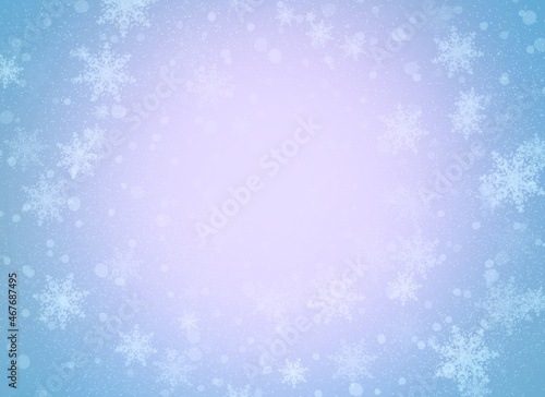 © Medvedeva, Fototapeta premium cute blue purple pink christmas card with copy space and snowfall frame