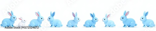 © Teenawat, Fototapeta premium Cute blue rabbit pattern with white background for children's products, nursery, kids, animal