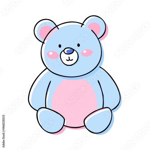 © Holly Design, Naklejka premium Cute blue teddy bear with pink accents and a friendly expression.