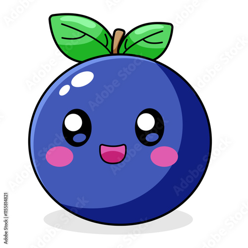Fototapeta premium Cute Blueberry Cartoon Kawaii Sticker. Character Vector Illustration