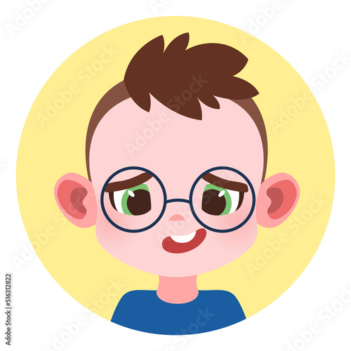 © YummyBuum, Obraz premium Cute boy in glasses portrait. Round kid avatar