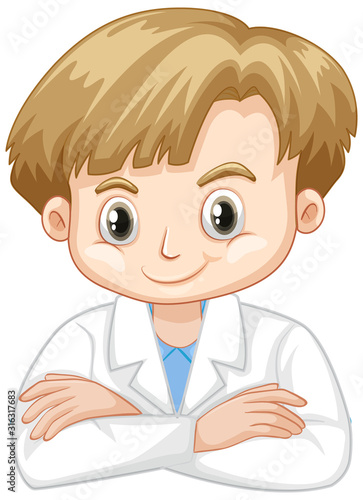 Obraz premium Cute boy in lab gown on white background