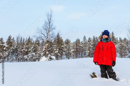 © TravelPhotoBloggers, Naklejka premium Cute boy outdoors on winter