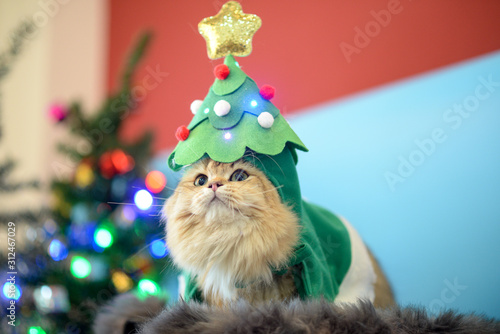 © panyawatt, Obraz premium Cute British Longhair cat indoor