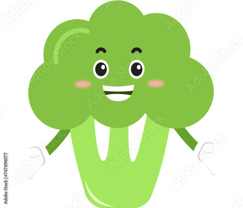 © onehourhappiness, Obraz premium cute broccoli cartoon character. cute vegetable