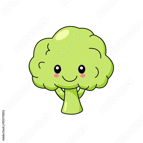 Fototapeta premium Cute Broccoli Cartoon Kawaii Sticker. Character Vector Illustration