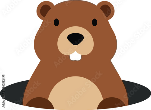 © Muhammad, Fototapeta premium Cute brown bear emerging from snowy hole in winter landscape