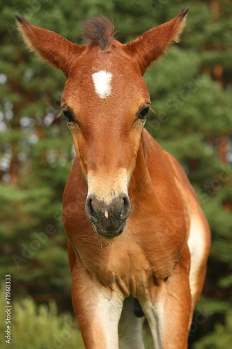 © virgonira, Fototapeta premium Cute brown foal portrait in summer