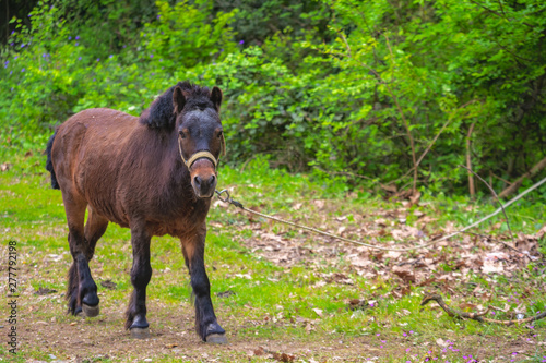 © Pav-Pro Photography , Fototapeta premium Cute brown pony tied to a rope