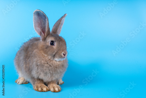 Obraz premium Cute brown rabbit isolated blue background